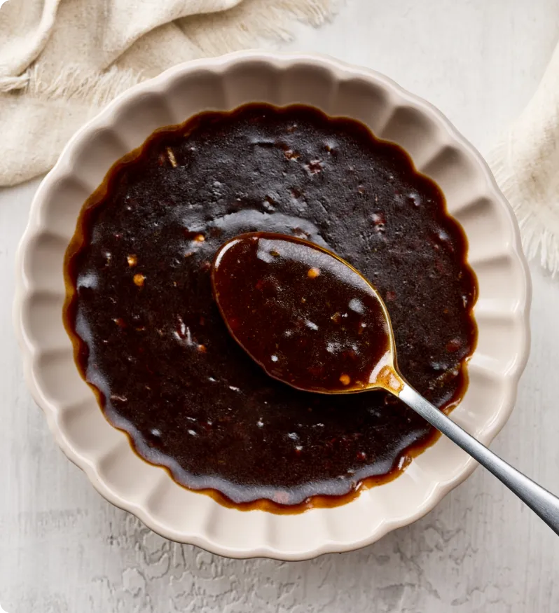 - Tjock, söt glasyr: Hoisinsås
