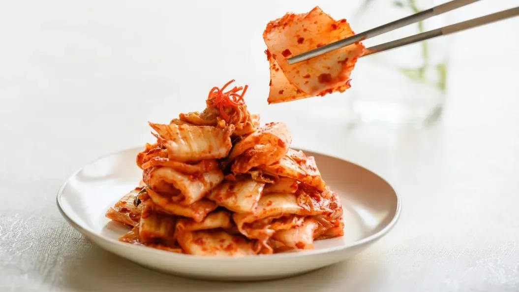 Kimchi – Koreas ikoniska fermenterade kål – passar perfekt med ris, nudlar eller grönsakswok, vilket ger rätten ett syrligt och kryddigt djup.