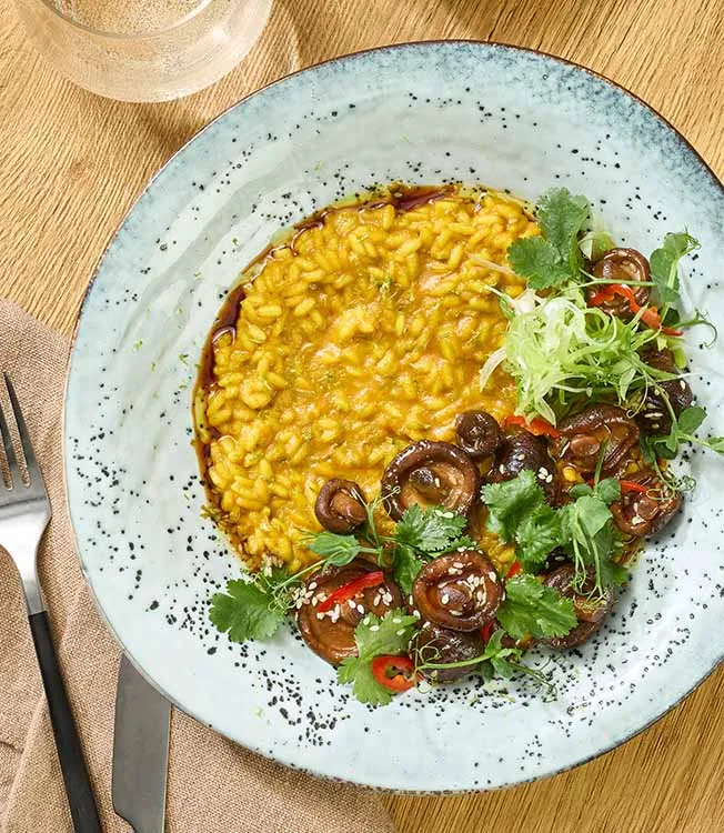 Gyllene mjölkrisotto med shiitake och chili