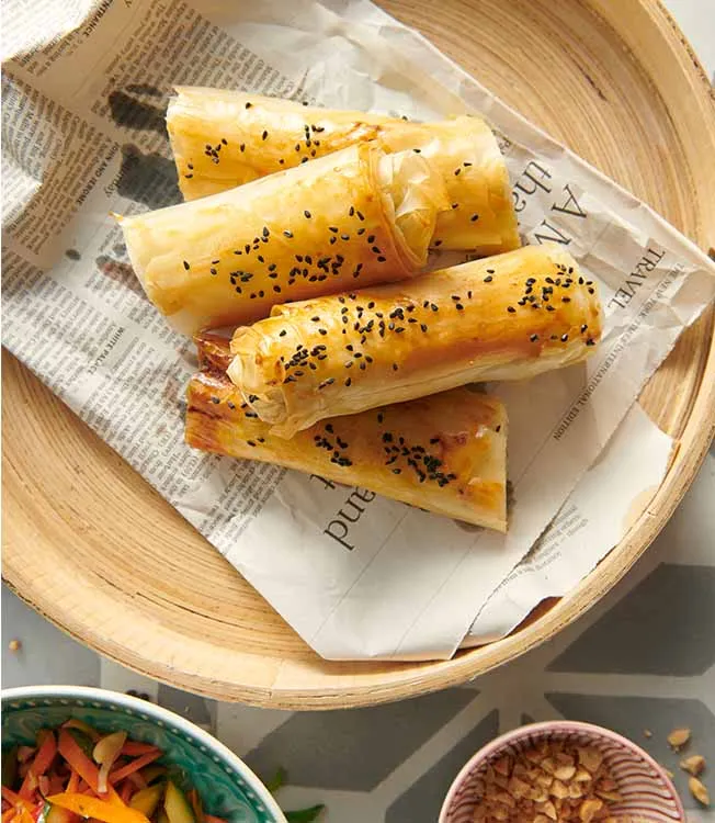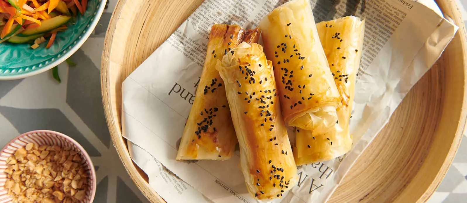 Vi ger klassisk börek en ny smak. Spenat och fetaost får sällskap av inlagda grönsaker med en hint av vietnamesisk smak. Kikkoman sojasås ger pricken över i:et.