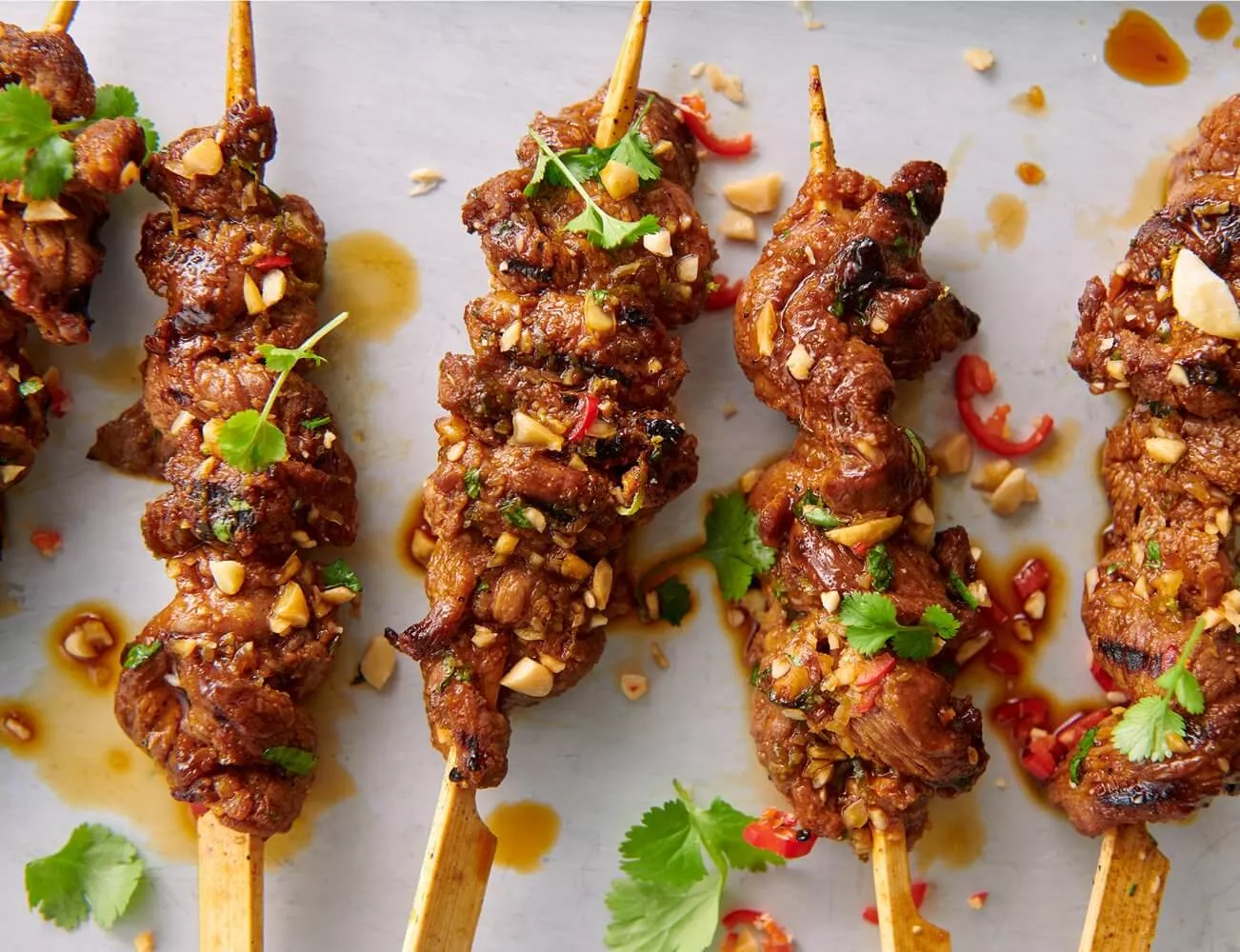 Om du letar efter en färdig sojasåsmarinad, behöver du inte leta längre, kolla in vårt utbud av Teriyakisåser. De finns i en mängd olika smaker: från rostad vitlök till honung och rostad sesam. När du marinerar mat som ska grillas kan du skrapa bort örterna och kryddorna och dutta dem torra innan du tillagar dem för att förhindra brända bitar.