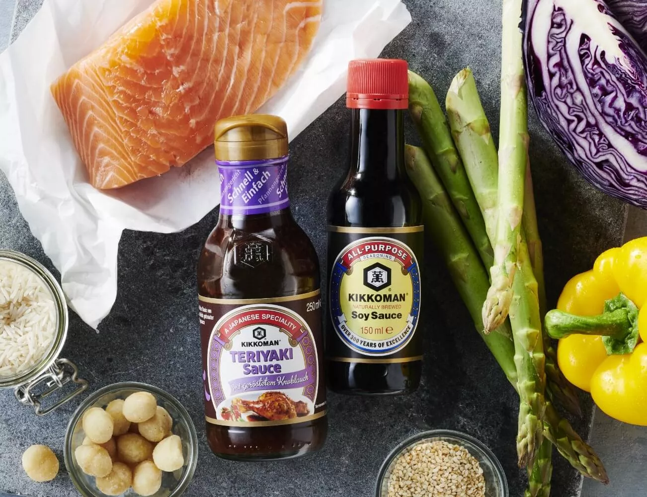 Om du vill tillaga en krispig och läcker stek eller kyckling med en aptitretande glasyr, pensla helt enkelt på en blandning av sojasås och honung när den nästan är genomstekt och sätt tillbaka den i ugnen i några minuter. Du kan också använda vår Kikkoman Sauce for Rice – Sweet, som är känd för sin sötaktiga smakfullhet.