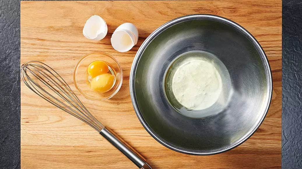 Separera äggulorna från vitan och lägg i två medelstora metallskålar. Se till att skålen för äggvitorna är mycket ren för att säkerställa att de stelnar senare.