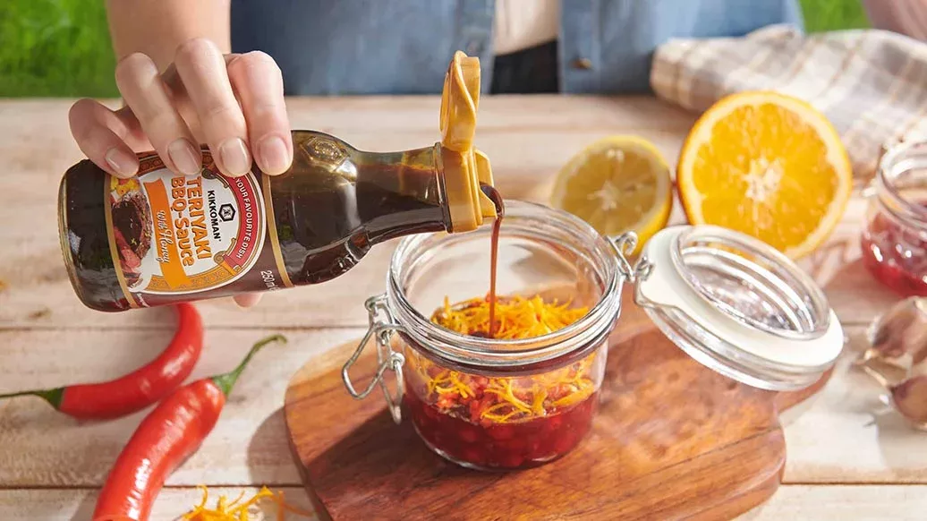 Blanda tranbären med Kikkoman Teriyaki BBQ-sås Honung, apelsinskal, citronsaft och oregano. Om du vill ha en extra kick, tillsätt finhackad chili efter smak.