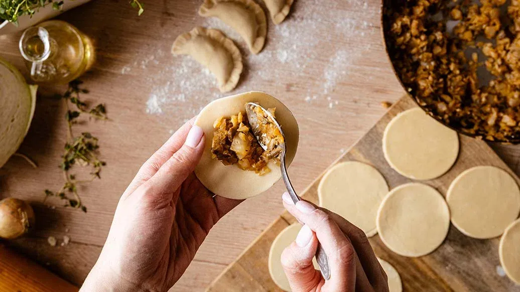 Om fyllningen känns för fuktig efter att den svalnat, pressa ur lite mer vätska innan du formar dumplingsen – detta hjälper kanterna att sluta ordentligt och förhindrar att de öppnar sig under tillagningen.