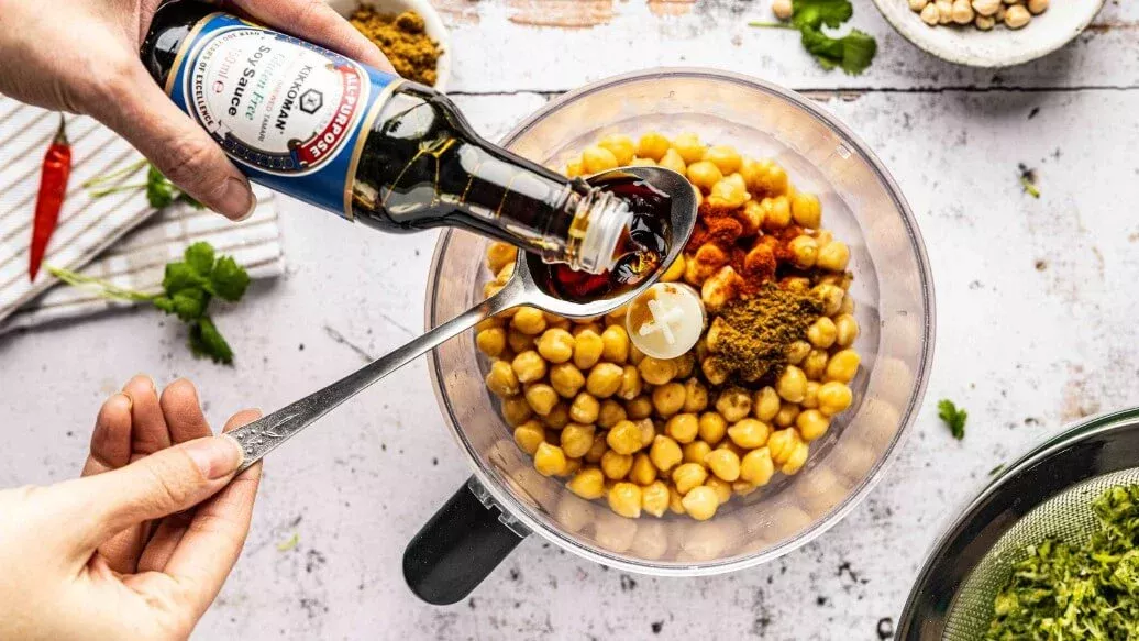 200 g kokta kikärter (eller konserverade) – ½ tsk garam masala – ¼ tsk chilipulver – ½ msk Kikkoman naturligt bryggd Tamari glutenfri sojasås