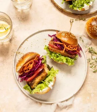 Dessa fiskburgare med krispig kål- och morotstoppning är riktiga vinnare till middag. Hamburgarna har en mild chilivärme, men om du inte gillar hetta är det bara att hoppa över Kikkoman Kimchi kryddig chilisås.