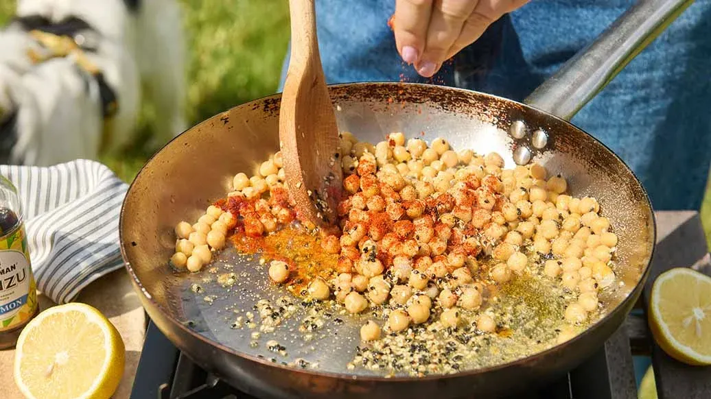 En levande twist på klassisk sallad – jordnötsmarinerad kyckling möter krispig rödkål, krämig jordnöt och Kikkoman Ponzu citrondressing, krispiga kikärter och aromatisk persilja för en explosion av konsistens och friskhet.