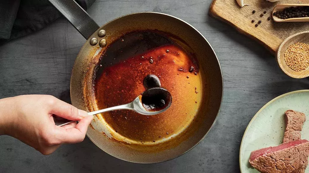 Häll Kikkoman Teriyaki Marinade i stekpannan där köttet tillagats och värm på hög värme tills det tjocknar.