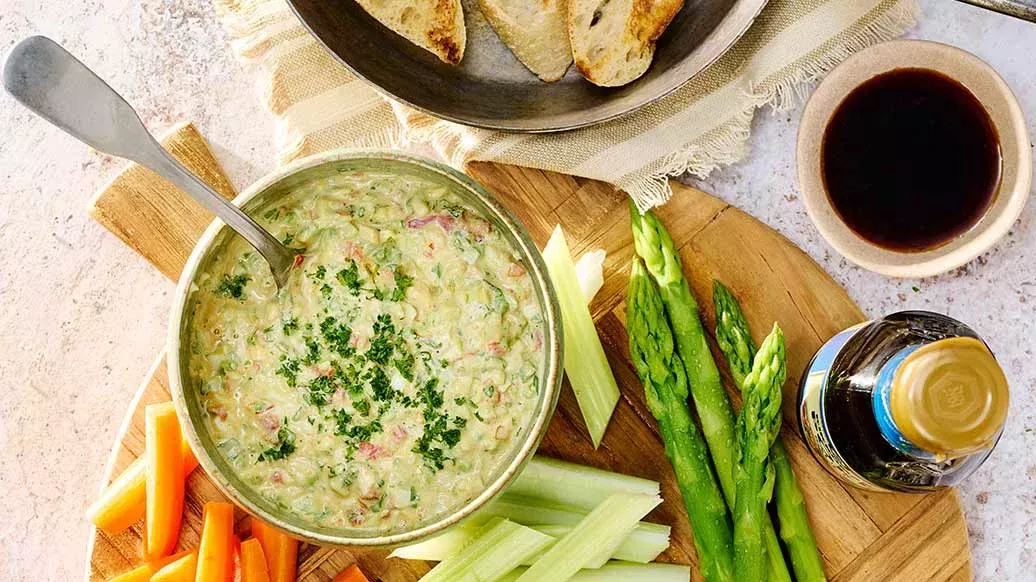 Vispa upp en krämig avokado-äggmajonnäsdipp med uppiggande Kikkoman Pokesås. Bred ut den på en knaprigt rostad baguette eller ringla den över färska grönsaker, kex eller valfritt snacks.
