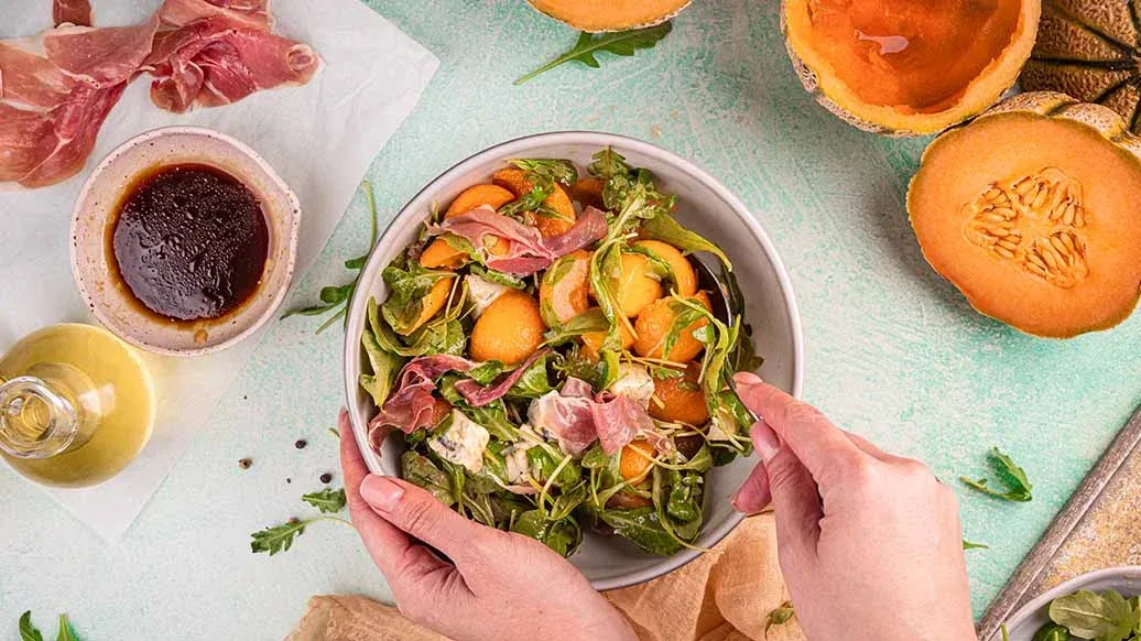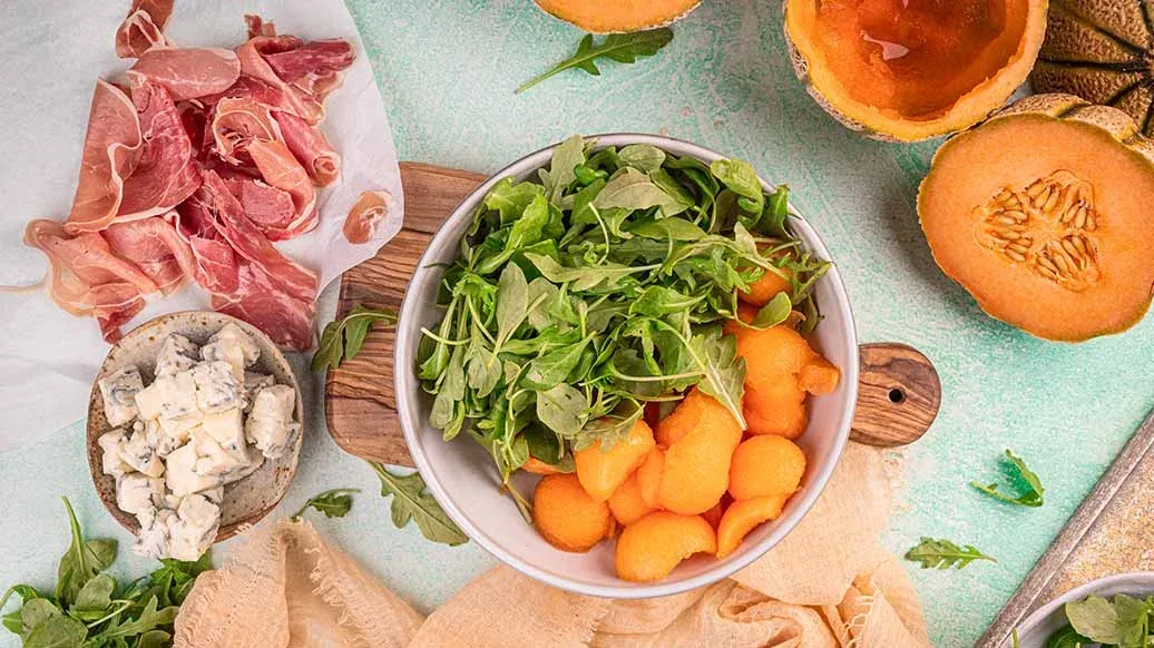 Ruccolasallad med melon och parmaskinka