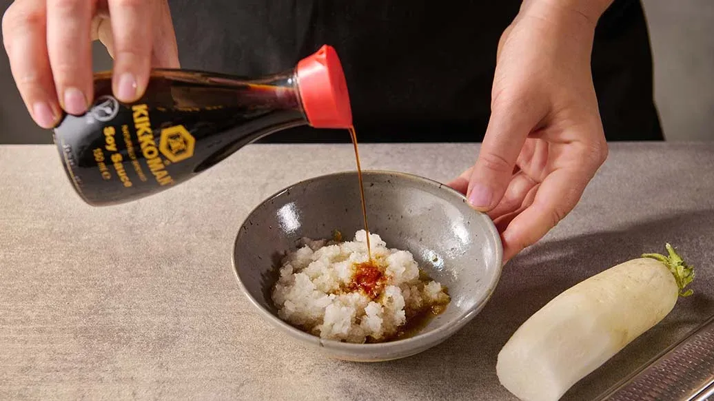 Riv rädisan fint och blanda med Kikkoman sojasås.