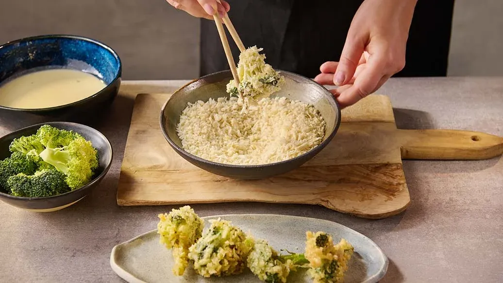 80 g broccoli – 50 g tempuramjöl – 45 ml vatten – 30 g Kikkoman Panko - krispigt ströbröd i japansk stil – 150 ml rapsolja