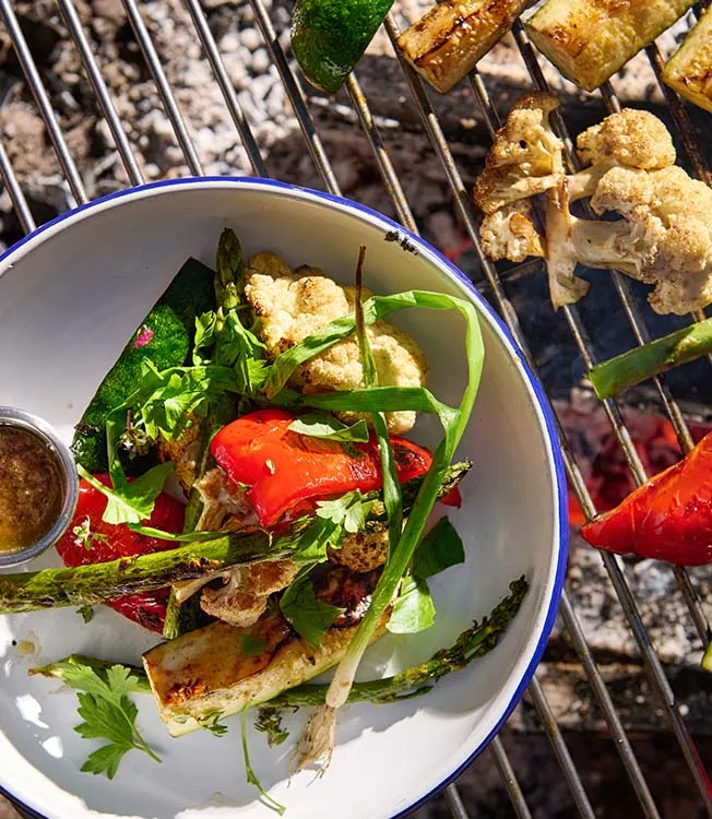 Fira sommarens livliga smaker med grillade säsongsbetonade grönsaker och en klassisk italiensk vitlök- och ansjovis bagna cauda-sås. Toppad med färska örter för en läcker explosion av färger och smaker.