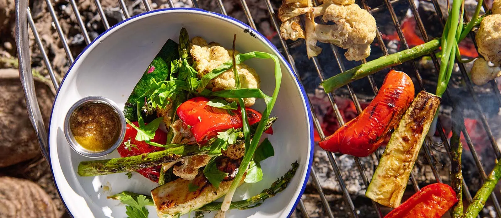 Somrigt vegetariskt från grillen med bagna cauda