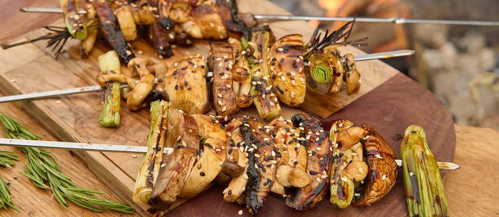 Dessa svamp- och purjolöksspett smaksatta med rosmarin, vitlök och Kikkoman Ponzu citron är en enkel men läcker rätt – perfekt för grillning eller snabba måltider.