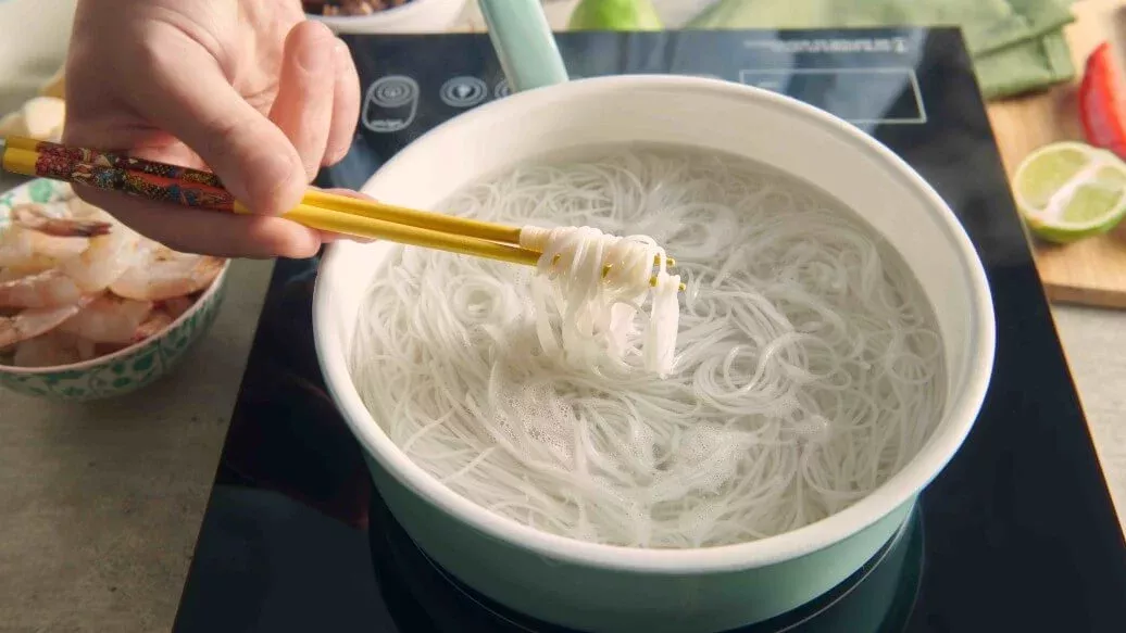 Koka nudlarna enligt anvisningarna på förpackningen och låt dem rinna av.