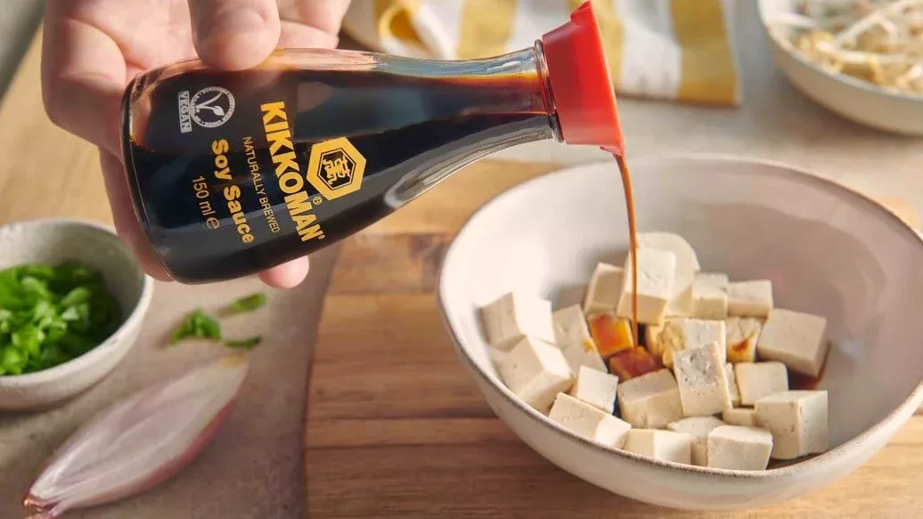 100 g neutral tofu – 1 msk vetemjöl – 30 ml Kikkoman naturligt bryggd sojasås