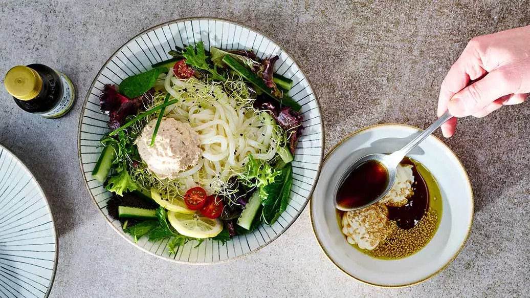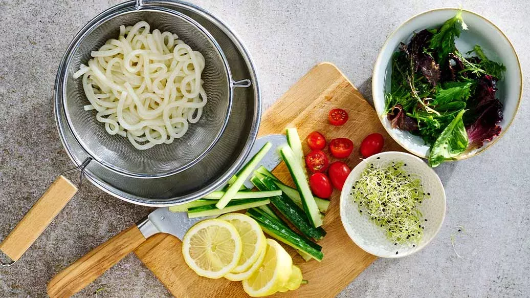 När temperaturen stiger, slappna av med vår kalla udonsallad. Syrlig ponzu, mör tonfisk och uppfriskande grönsaker gör denna rätt till den ultimata sommarrätten.