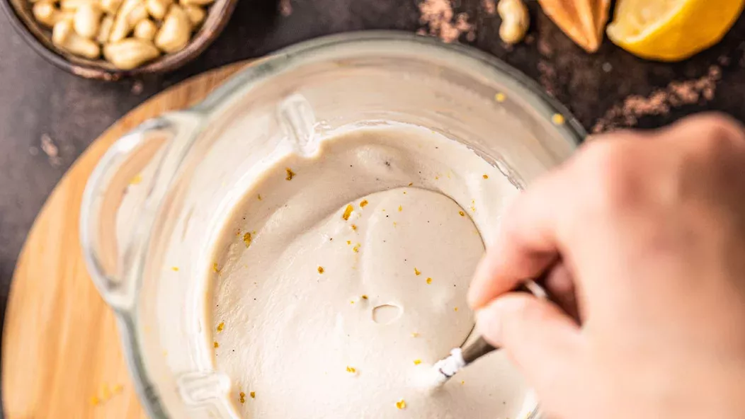 Blötlägg cashewnötterna i vatten och låt dem stå över natten.