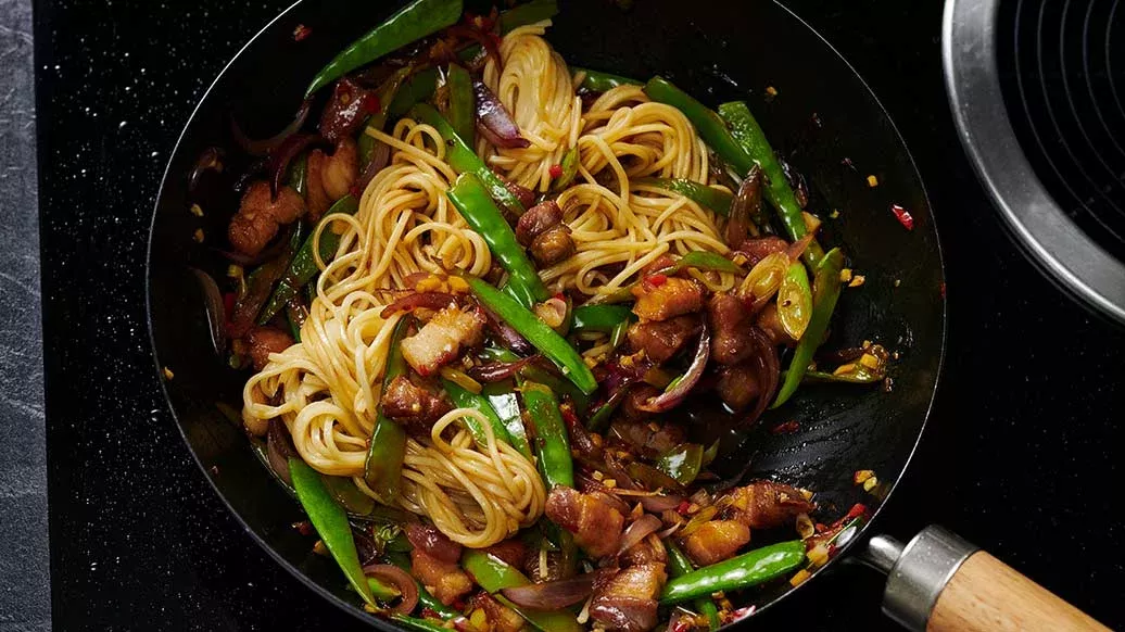 Ha inte för mycket i wokgrytan. För tillagning av stora portioner, tillagas i omgångar för bästa resultat.